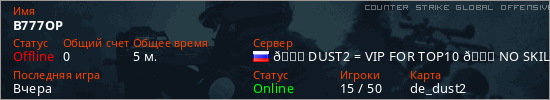 Играет на Counter Strike Global Offensive сервере. Страна: РоссияПервый раз замечен 04:00 04.03.2026