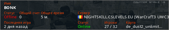 Играет на Counter Strike 1.6 сервере. Страна: РумынияПервый раз замечен 21:52 27.01.2026
