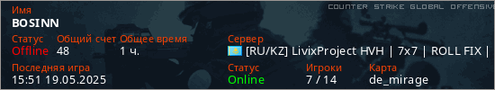 Играет на Counter Strike Global Offensive сервере. Страна: КазахстанПервый раз замечен 23:15 24.04.2025
