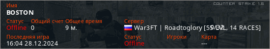 Играет на Counter Strike 1.6 сервере. Страна: РоссияПервый раз замечен 18:46 09.09.2023