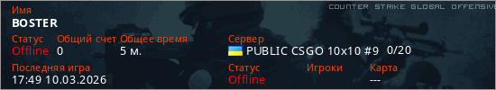 Играет на Counter Strike Global Offensive сервере. Страна: УкраинаПервый раз замечен 17:41 10.03.2026