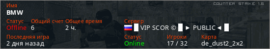 Играет на Counter Strike 1.6 сервере. Страна: РоссияПервый раз замечен 11:49 21.09.2025