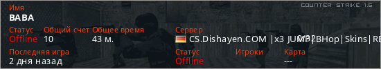 Играет на Counter Strike 1.6 сервере. Страна: ГерманияПервый раз замечен 20:10 20.04.2026