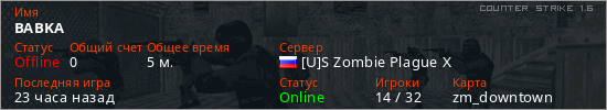 Играет на Counter Strike 1.6 сервере. Страна: РоссияПервый раз замечен 12:46 04.03.2026