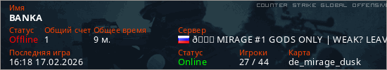Играет на Counter Strike Global Offensive сервере. Страна: РоссияПервый раз замечен 18:03 22.11.2025