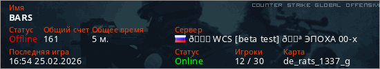 Играет на Counter Strike Global Offensive сервере. Страна: РоссияПервый раз замечен 16:51 25.02.2026