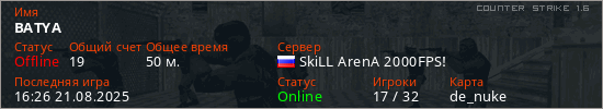 Последний раз был в сети 16:26 21.08.2025 Игрок с таким ником замечен на 32 серверах