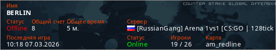 Играет на Counter Strike Global Offensive сервере. Страна: РоссияПервый раз замечен 09:54 07.03.2026