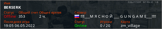 Играет на Counter Strike 1.6 сервере. Страна: РоссияПервый раз замечен 21:19 30.04.2022