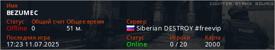 Играет на Counter Strike Source сервере. Страна: РоссияПервый раз замечен 19:24 25.06.2023