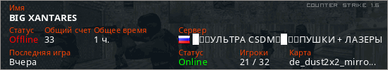 Последний раз был в сети Вчера Игрок с таким ником замечен на 11 серверах