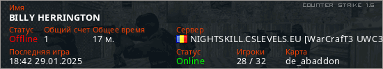 Играет на Counter Strike 1.6 сервере. Страна: РумынияПервый раз замечен 19:35 19.01.2025