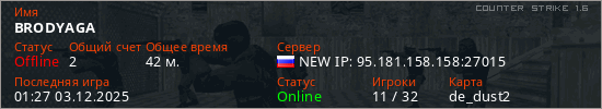 Играет на Counter Strike 1.6 сервере. Страна: РоссияПервый раз замечен 23:21 04.10.2025