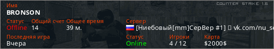 Последний раз был в сети Вчера Игрок с таким ником замечен на 9 серверах
