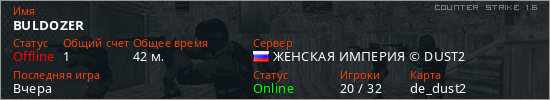 Последний раз был в сети Вчера Игрок с таким ником замечен на 12 серверах