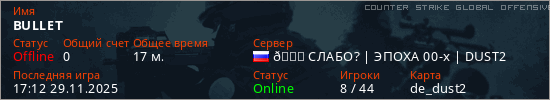 Играет на Counter Strike Global Offensive сервере. Страна: РоссияПервый раз замечен 07:18 23.11.2025