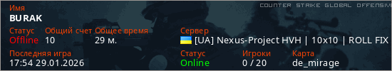 Играет на Counter Strike Global Offensive сервере. Страна: УкраинаПервый раз замечен 22:43 25.01.2026