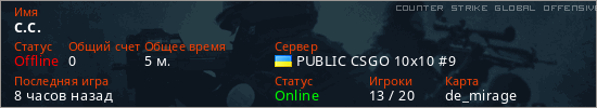Играет на Counter Strike Global Offensive сервере. Страна: УкраинаПервый раз замечен 18:53 07.03.2026