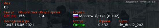 Играет на Counter Strike 1.6 сервере. Страна: РоссияПервый раз замечен 21:16 12.10.2020