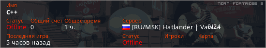 Играет на Team Fortress 2 сервере. Страна: РоссияПервый раз замечен 00:38 18.01.2026