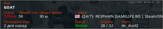 Играет на Counter Strike 1.6 сервере. Страна: СШАПервый раз замечен 22:09 02.12.2025