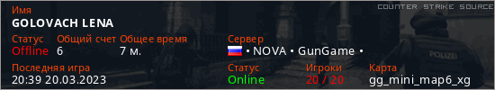Играет на Counter Strike Source сервере. Страна: РоссияПервый раз замечен 20:35 20.03.2023