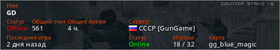 Играет на Counter Strike 1.6 сервере. Страна: РоссияПервый раз замечен 17:58 18.10.2025