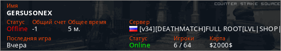Последний раз был в сети Вчера Игрок с таким ником замечен на 2 серверах