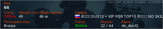 Играет на Counter Strike Global Offensive сервере. Страна: РоссияПервый раз замечен 15:28 19.04.2025