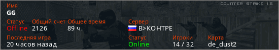 Играет на Counter Strike 1.6 сервере. Страна: РоссияПервый раз замечен 15:43 13.11.2019