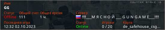Играет на Counter Strike 1.6 сервере. Страна: РоссияПервый раз замечен 18:46 18.04.2022