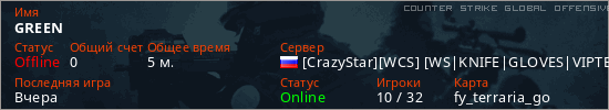 Играет на Counter Strike Global Offensive сервере. Страна: РоссияПервый раз замечен 18:36 13.03.2026