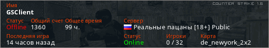 Последний раз был в сети 6 часов назад Игрок с таким ником замечен на 45 серверах