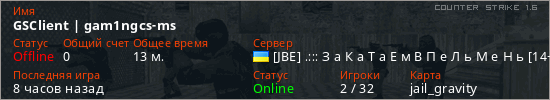 Играет на Counter Strike 1.6 сервере. Страна: УкраинаПервый раз замечен 18:04 10.04.2026
