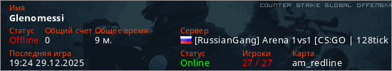 Играет на Counter Strike Global Offensive сервере. Страна: РоссияПервый раз замечен 10:37 26.12.2025