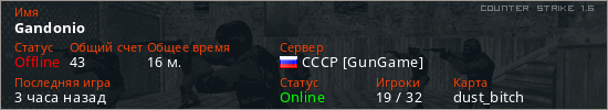 Последний раз был в сети Час назад Игрок с таким ником замечен на 5 серверах