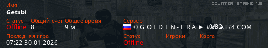 Играет на Counter Strike 1.6 сервере. Страна: РоссияПервый раз замечен 07:21 29.01.2026
