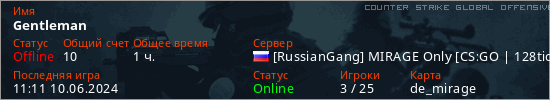 Играет на Counter Strike Global Offensive сервере. Страна: РоссияПервый раз замечен 06:37 06.05.2024