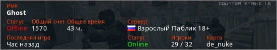 Последний раз был в сети 32 минуты назад Игрок с таким ником замечен на 66 серверах
