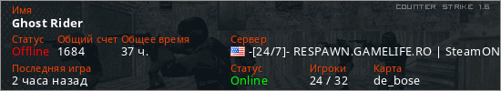 Играет на Counter Strike 1.6 сервере. Страна: СШАПервый раз замечен 20:39 01.09.2025