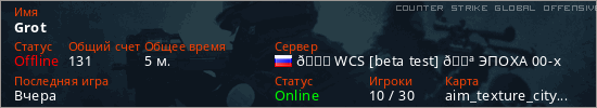 Последний раз был в сети Вчера Игрок с таким ником замечен на 4 серверах