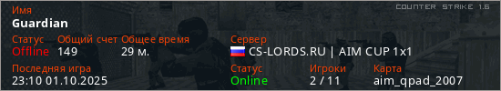 Играет на Counter Strike 1.6 сервере. Страна: РоссияПервый раз замечен 05:12 28.09.2024