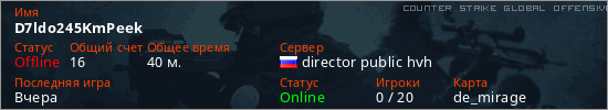 Последний раз был в сети Вчера Игрок с таким ником замечен на 19 серверах