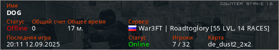 Последний раз был в сети 20:11 12.09.2025 Игрок с таким ником замечен на 28 серверах