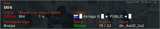 Играет на Counter Strike 1.6 сервере. Страна: РоссияПервый раз замечен 08:36 14.03.2026