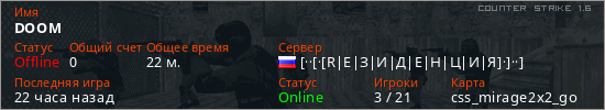 Последний раз был в сети 20 часов назад Игрок с таким ником замечен на 32 серверах