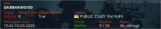 Играет на Counter Strike Global Offensive сервере. Страна: УкраинаПервый раз замечен 15:38 15.03.2026