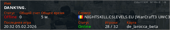 Играет на Counter Strike 1.6 сервере. Страна: РумынияПервый раз замечен 20:30 05.02.2026