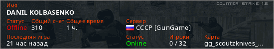 Последний раз был в сети 20 часов назад Игрок с таким ником замечен на 5 серверах