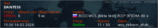 Играет на Counter Strike Global Offensive сервере. Страна: РоссияПервый раз замечен 15:28 16.02.2026